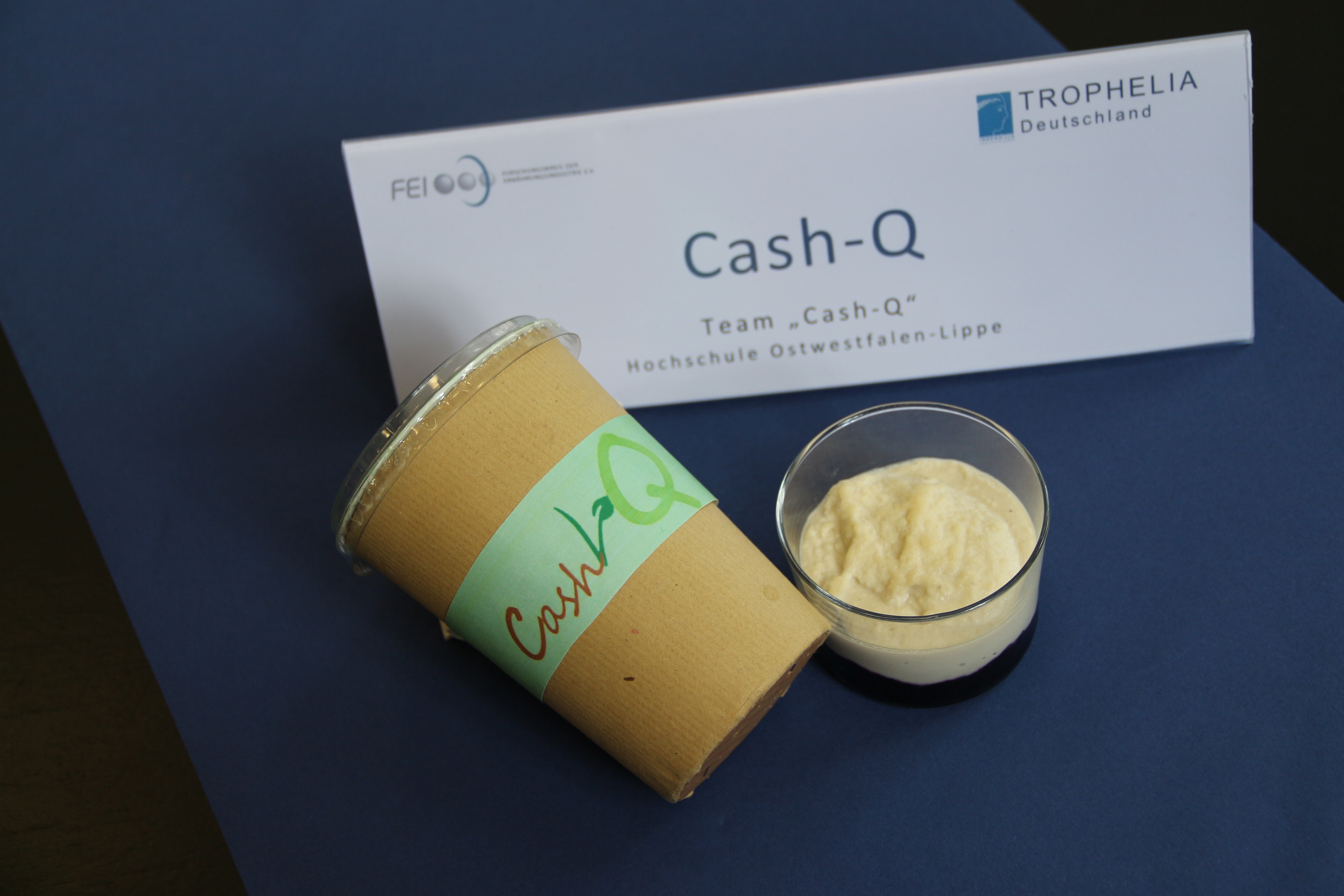 "Cash-Q" ist ein veganer, soja- und glutenfreier Quark auf Cashewnuss-Basis. Mit dem Produkt wird die Nachhaltigkeit durch die Verarbeitung von Nebenprodukten der cashewverarbeitenden Unternehmen (Bruch- und halbe Cashewkerne) sichergestellt.