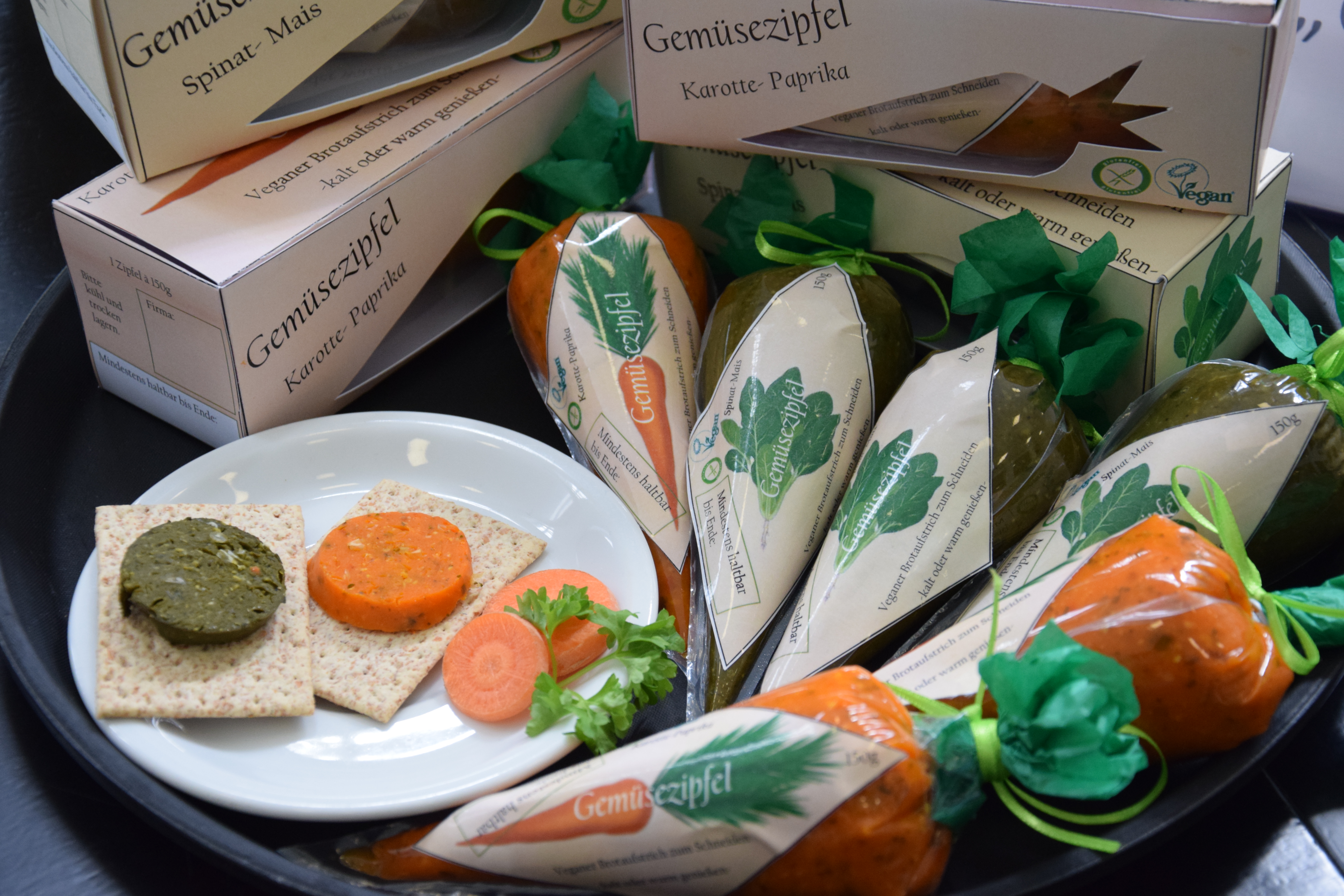 "Gemüsezipfel" ist ein veganer, kalorienarmer Gemüsesnack, der kalt und warm verzehrt werden kann. Er wird in zwei Geschmacksvarianten angeboten.