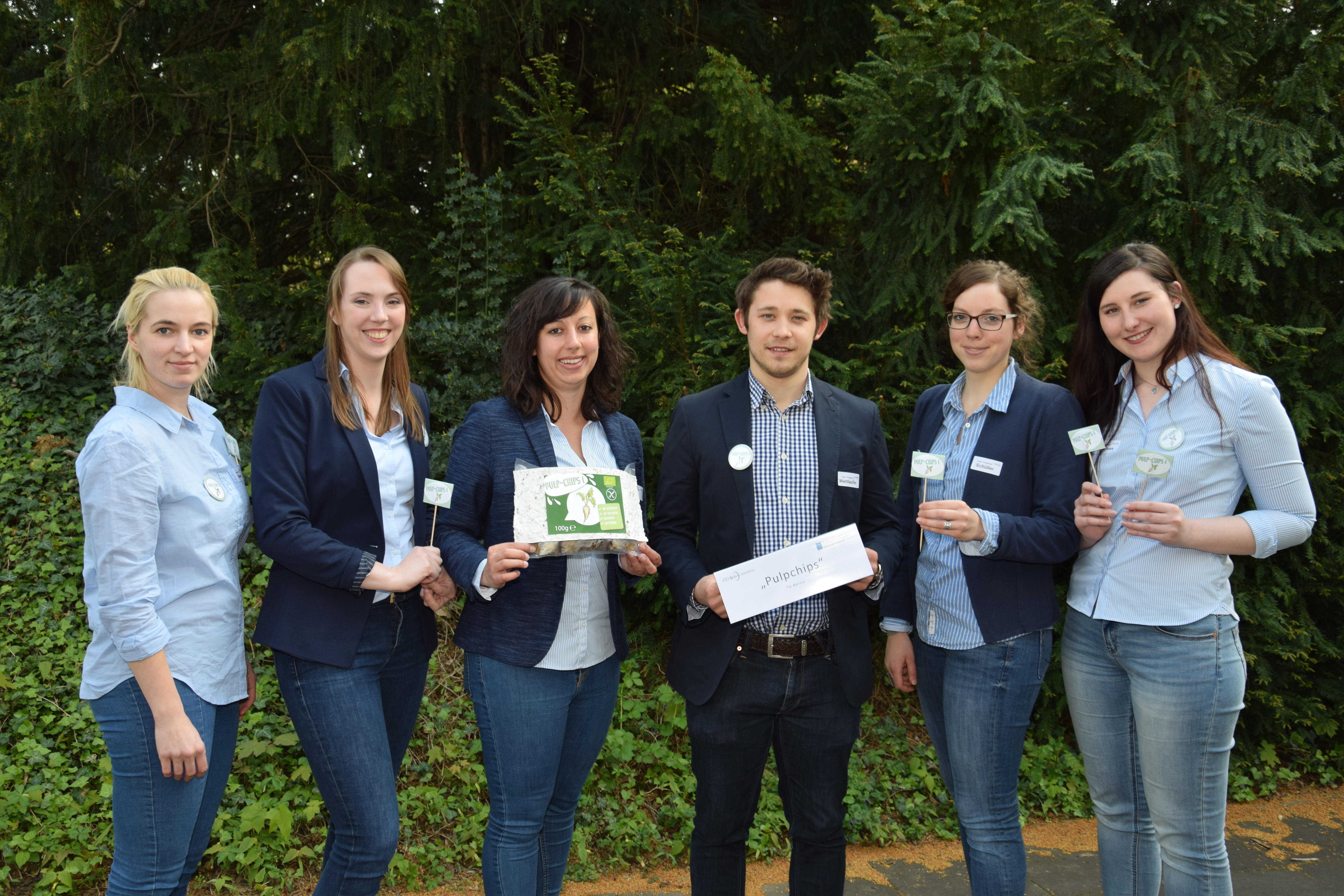 Von der Spree an den Rhein angereist: Das Team der Technischen Universität Berlin hat die "Pulp-Chips" entwickelt. Rübe mal anders!