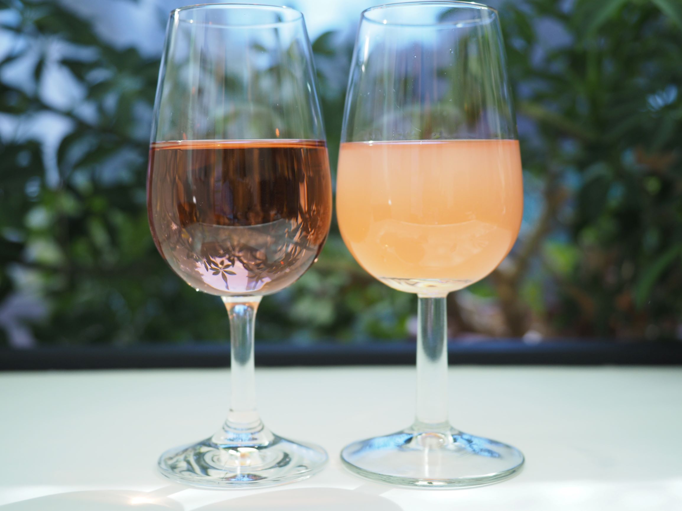 Links klar und stabil, rechts nachgetrübt: Roséwein aus Portugieser-Trauben, der beim IGF-Projekt ebenfalls untersucht wird.