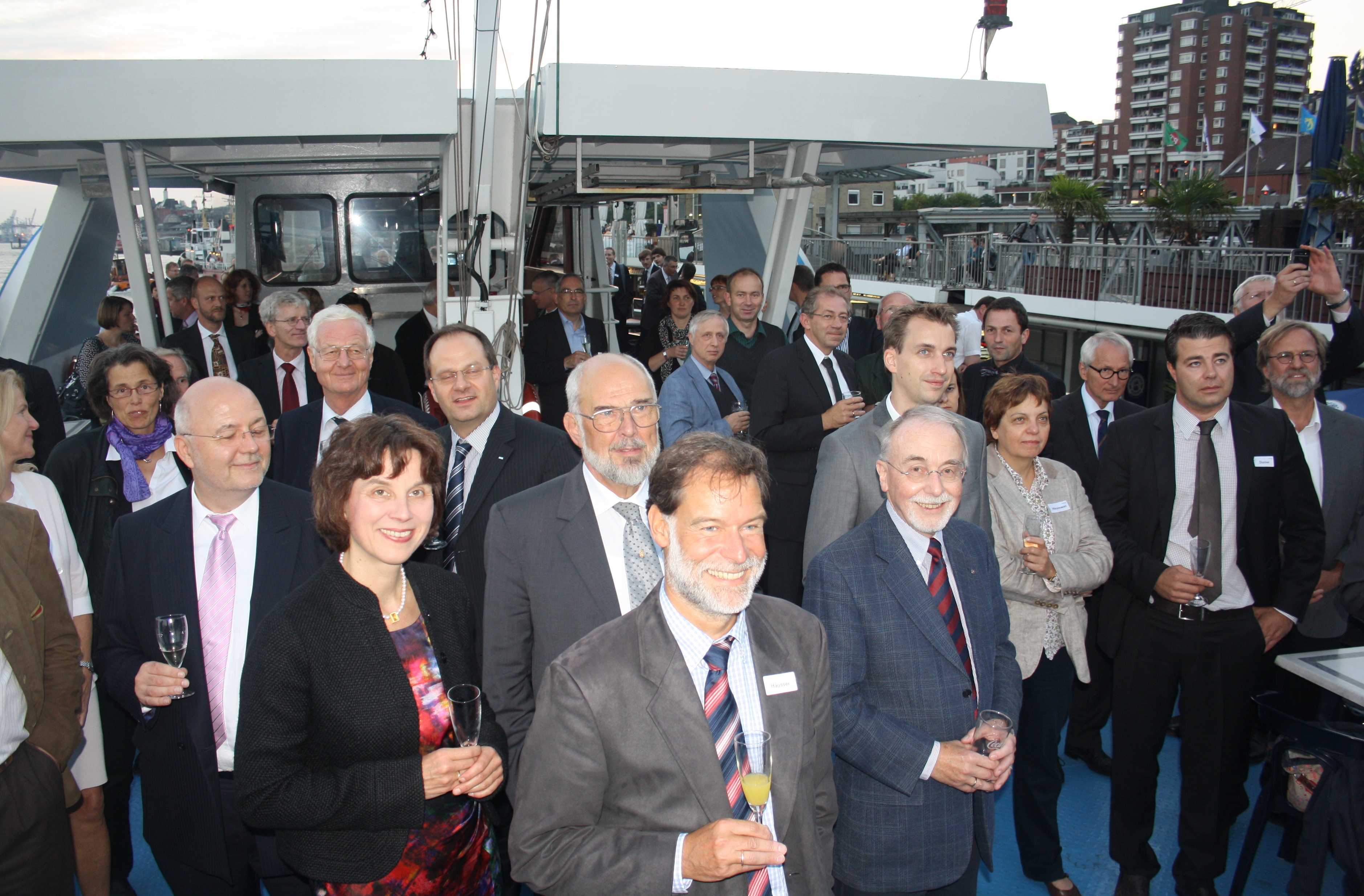 Empfang auf der MS Hammonia im Hamburger Hafen: Die Zuhörer bei der Laudatio auf Dr. Jürgen Kohnke.