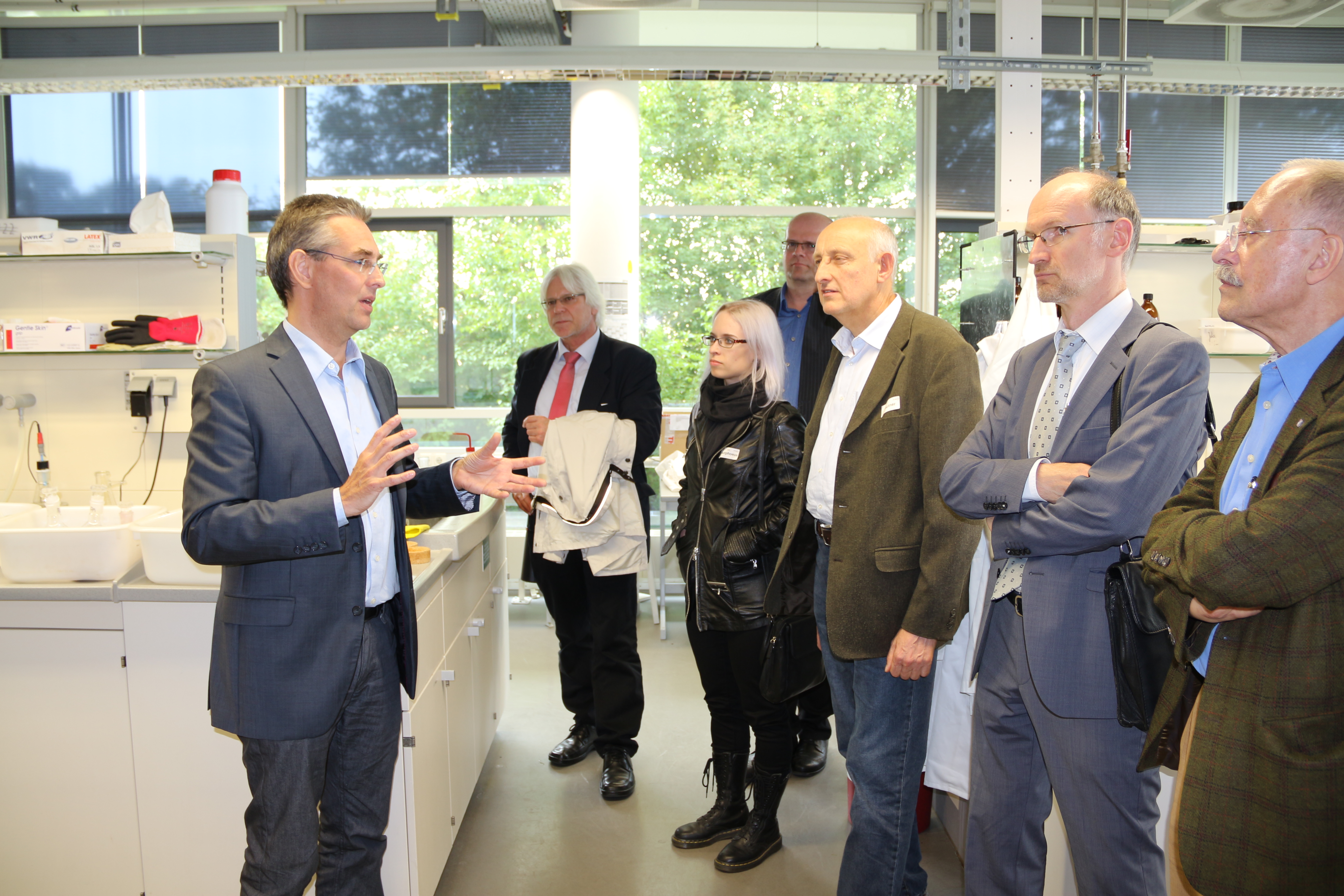 Institutsführung: Dr. Martin Steinhaus erläutert den Besuchern die Arbeitsbereiche der DFA.