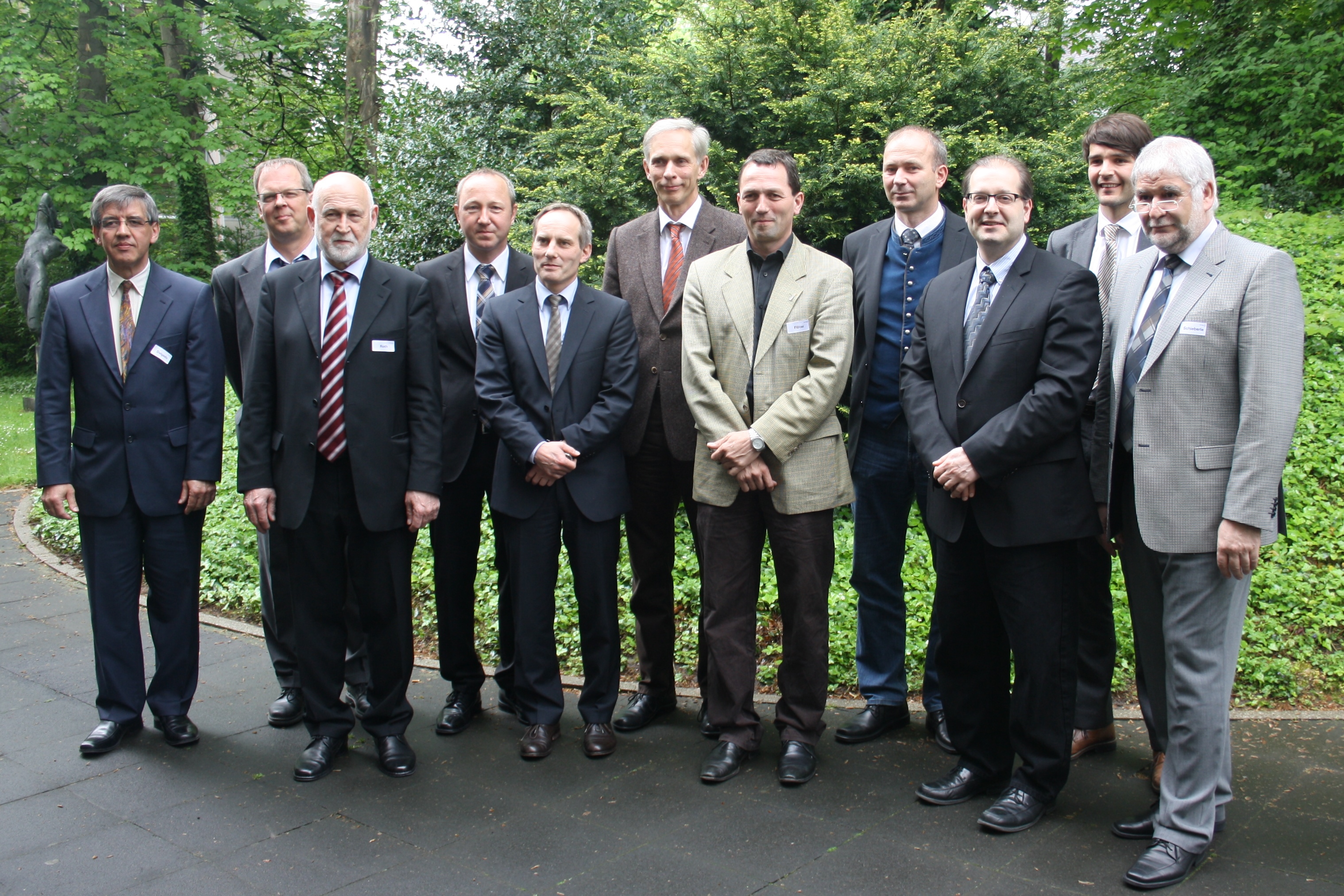 Der Moderator und die Referenten des 13. FEI-Kooperationsforums (von links nach rechts): Prof. Dr. Antonio Delgado, Prof. Dr. Peter Czermak, Dr. Bernhard Roth, Dr. Karl Ludovici, Prof. Dr. Reinhard Kohlus, Prof. Dr. Dr. Jörg Hinrichs, Prof. Dr. Eckhard Flöter, Prof. Dr. Thomas Becker, Prof. Dr. Jochen Weiss, Prof. Dr. Stefan Töpfl und Prof. Dr. Dr. Peter Schieberle.