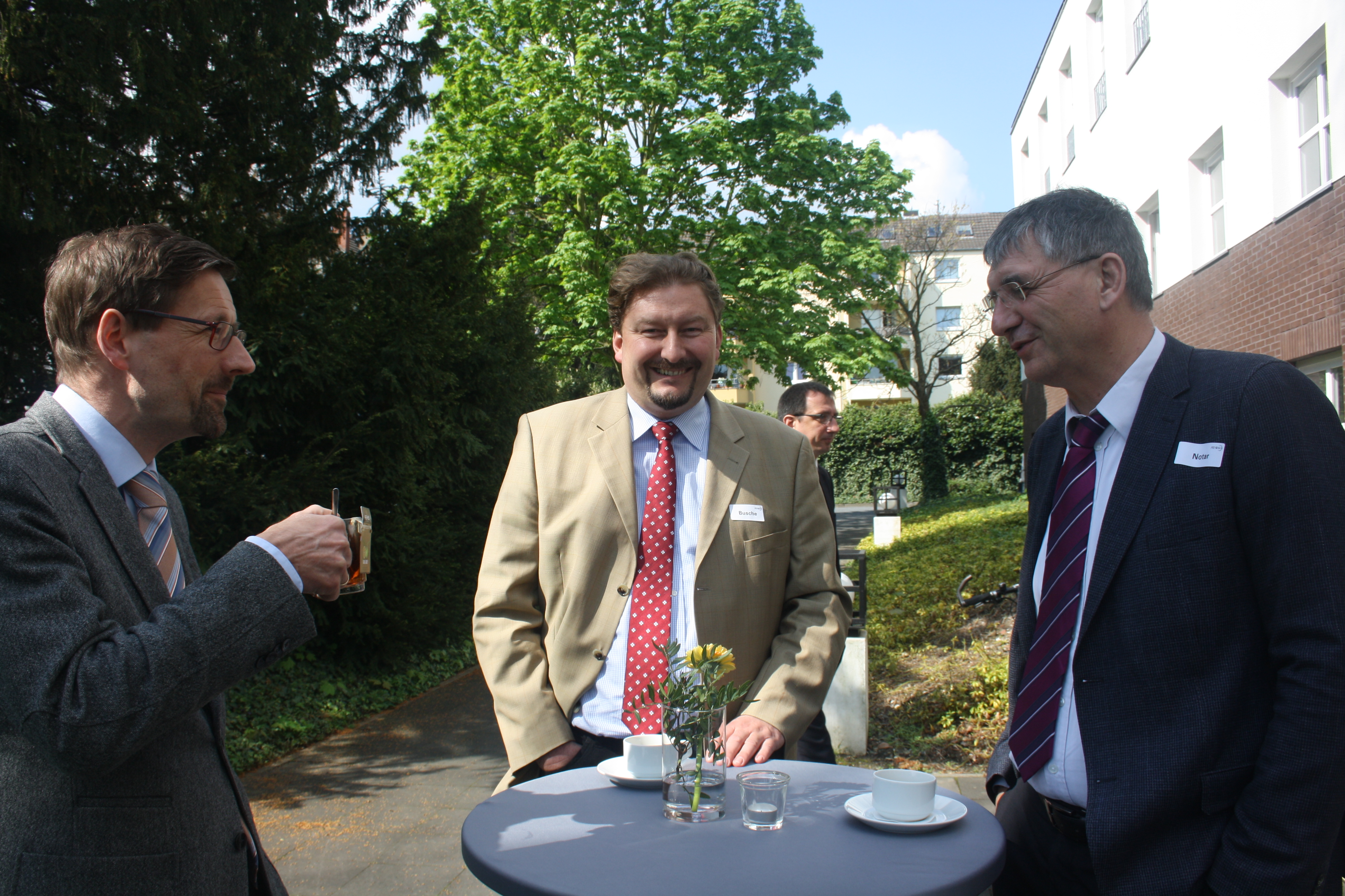 Pausengespräche unter freiem Himmel: Gideon Rath (chem. Fabrik Budenheim KG, Budenheim), Stephan Busche (Welding GmbH & Co. KG, Hamburg) und Walter Notar (J. M. Voith GmbH & Co. Beteiligungen KG, Heidenheim).