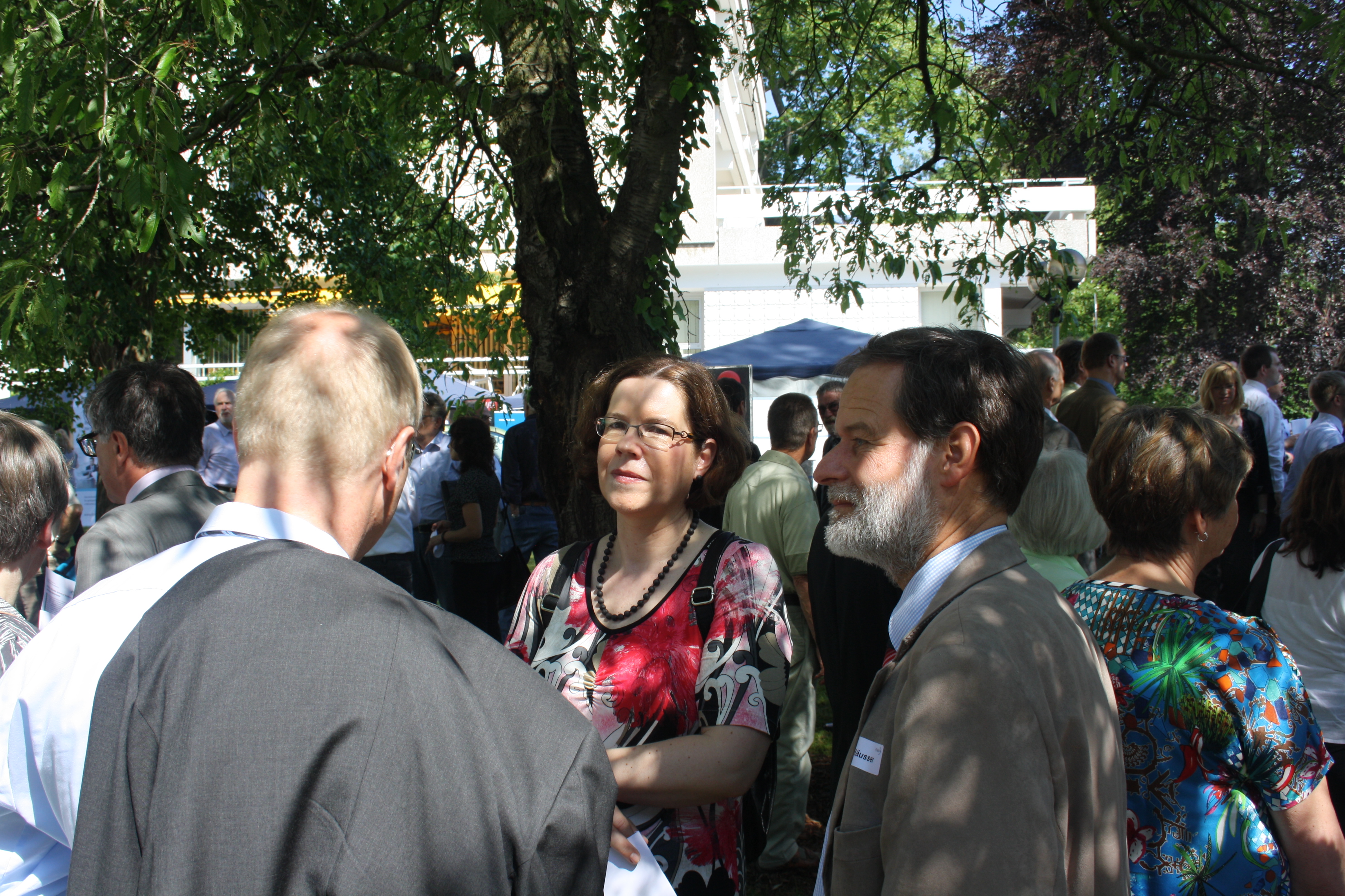 In der Mitte: RD'in Ullrike Blankenfeld vom BMWi und Dr. Volker Häusser, Geschäftsführer des FEI (rechts) im Gespräch mit AiF-Vorstandsmitglied Dr. Eduard Neufeld, FOGRA München (von hinten).