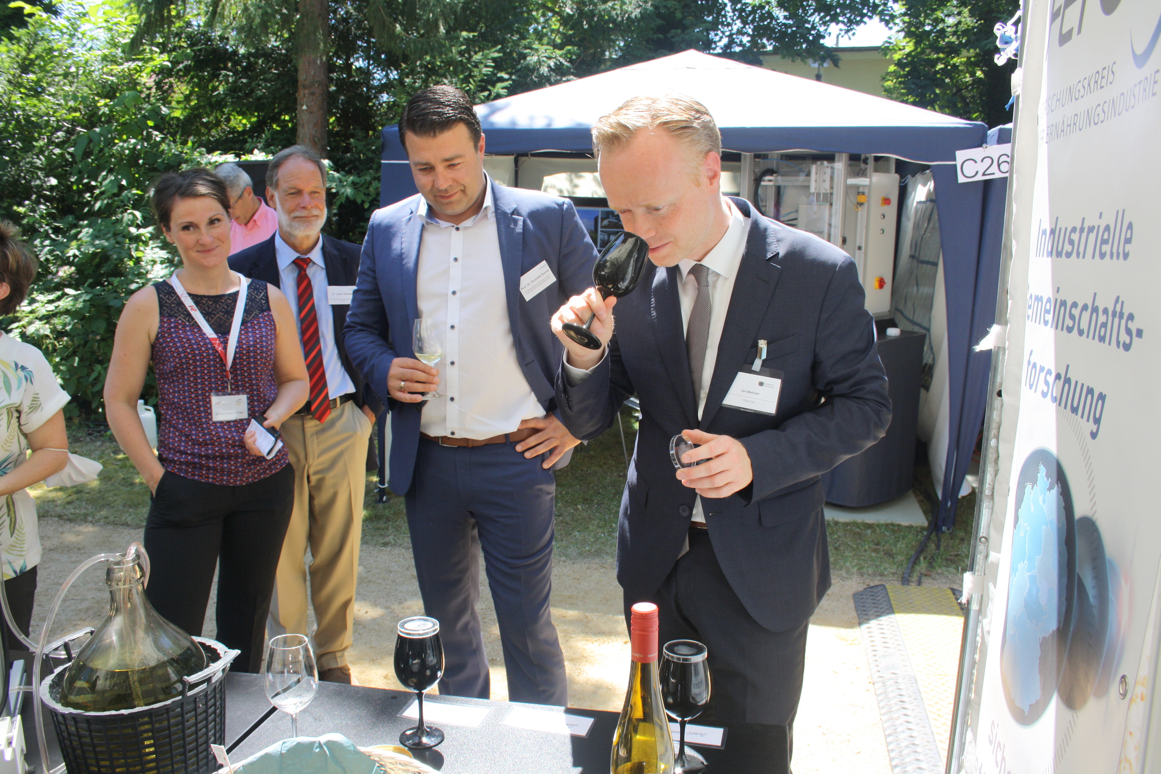 Nach pandemiebedingter 2-jähriger Pause hatte das Bundesministerium für Wirtschaft und Klimaschutz (BMWK) zum Innovationstag Mittelstand auf das Gartengelände der AiF Projekt GmbH in Berlin-Pankow eingeladen. Bereits zum elften Mal war der FEI unter den mehr als 200 Ausstellern vertreten und präsentierte bei strahlendem Sonnenschein eine UV-C-Anlage zur schonenden Entkeimung von Most und Wein als Ergebnis erstklassiger Industrieller Gemeinschaftsforschung.