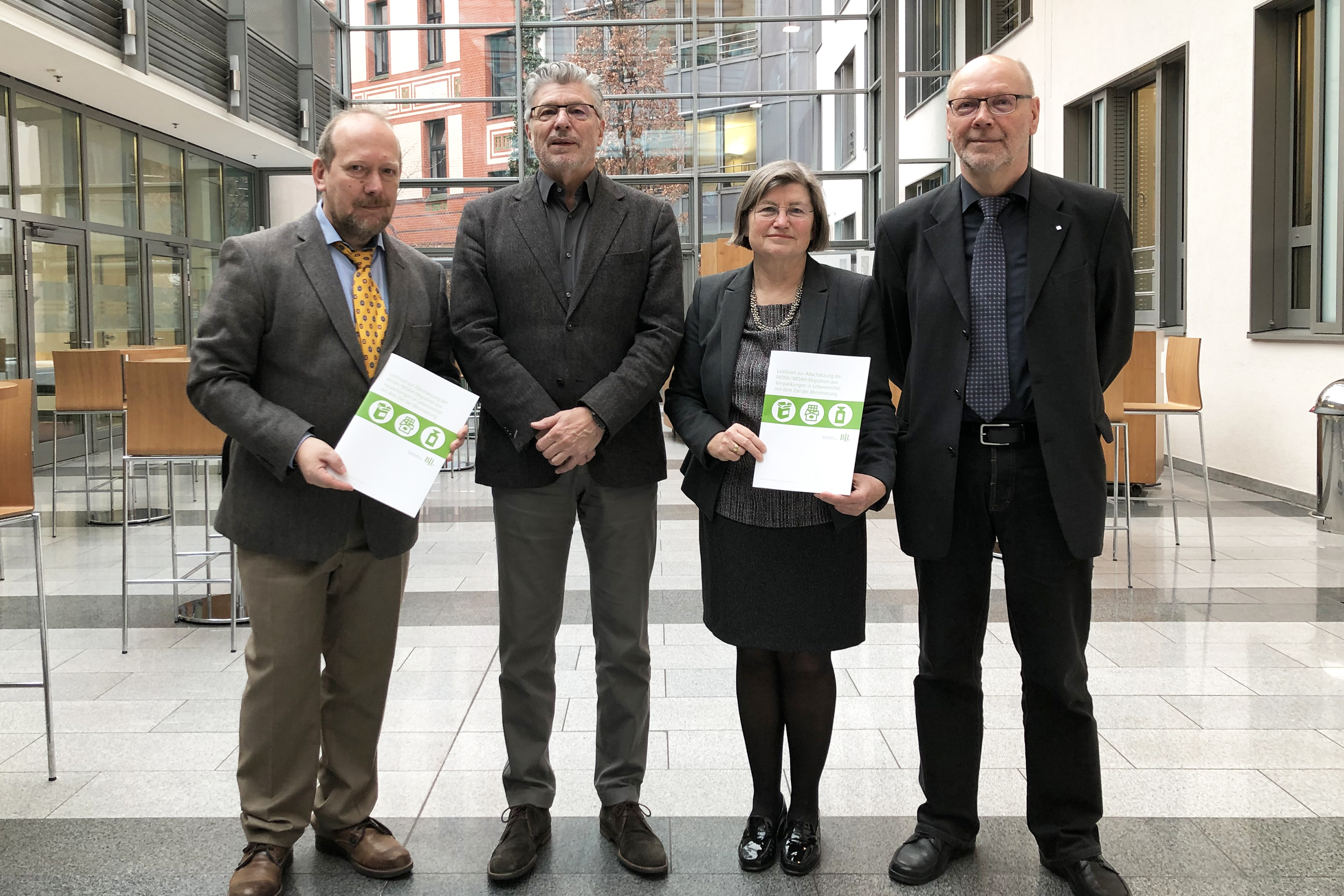 Stellen die Technische Leitlinie in Berlin vor: Ludwig Gruber (Fraunhofer-IVV, Freising), Prof. Dr. Reinhard Matissek (LCI, Köln), Dr. Sieglinde Stähle (BLL, Berlin) und Dr. Roland Franz (Fraunhofer-IVV, Freising).