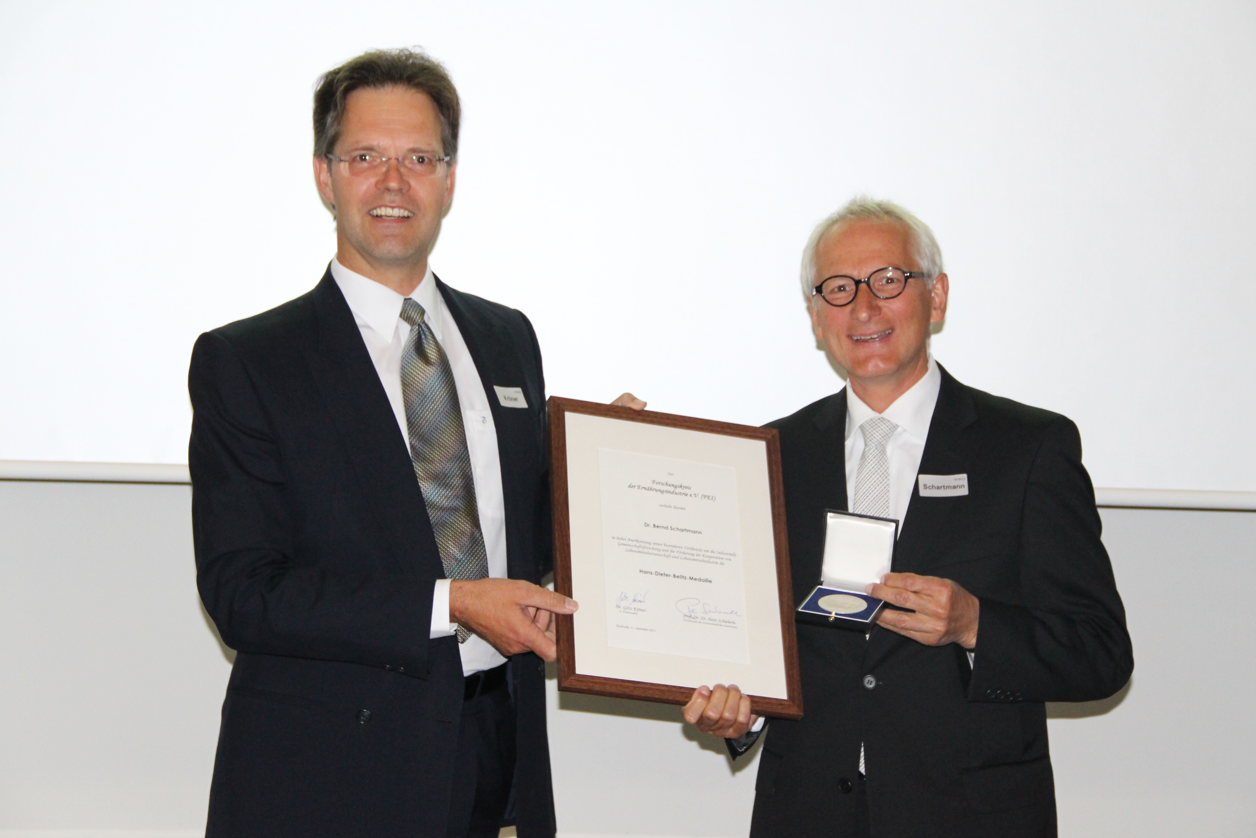 Der FEI-Vorsitzende Dr. Götz Kröner überreicht die Hans-Dieter-Belitz-Medaille an Dr. Bernd Schartmann.
