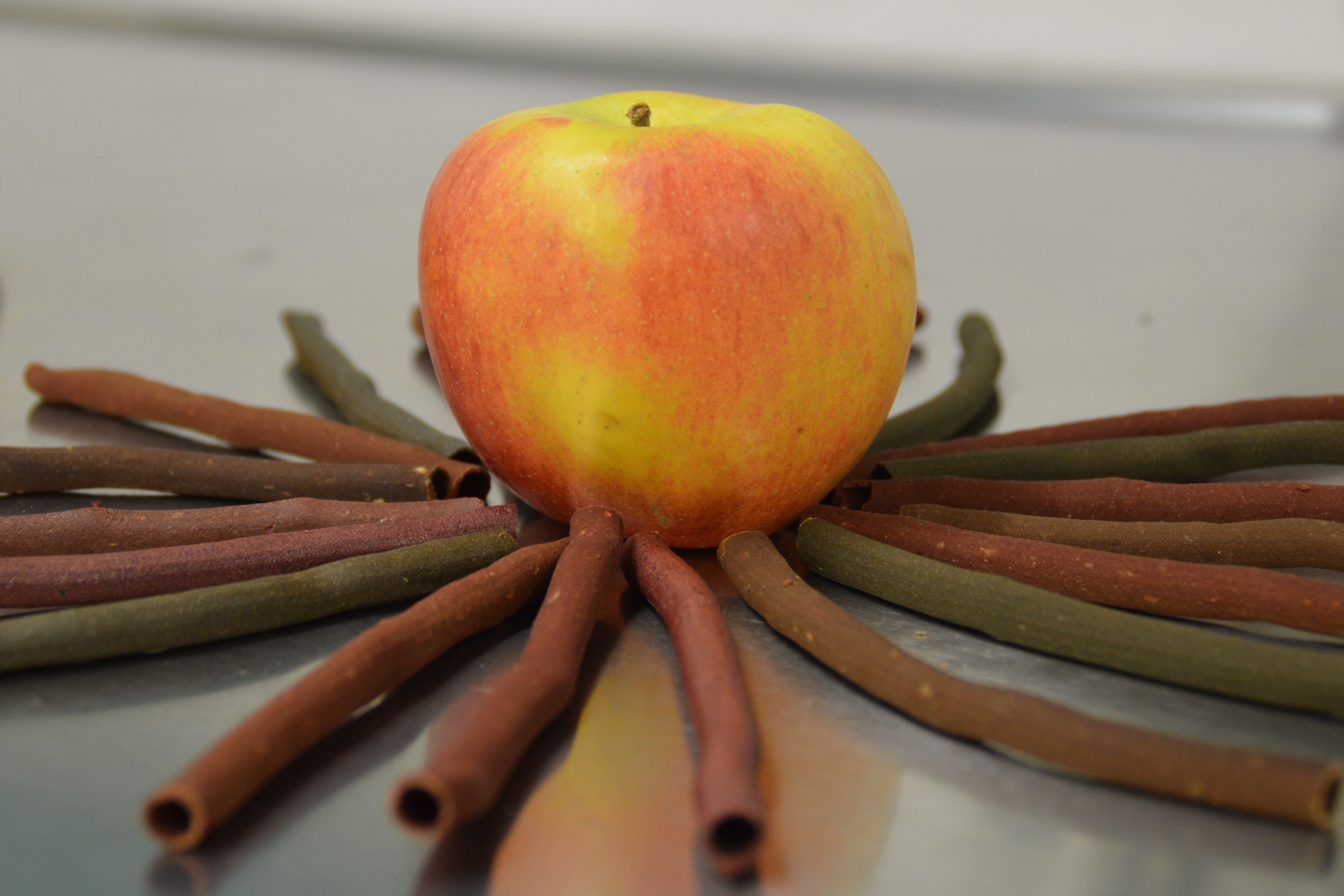 Trester aus der Apfelsaftproduktion bildet die Grundlage für den innovativen Trinkhalm "eatapple", der gleichzeitig eine leckere Knabberei ist.
