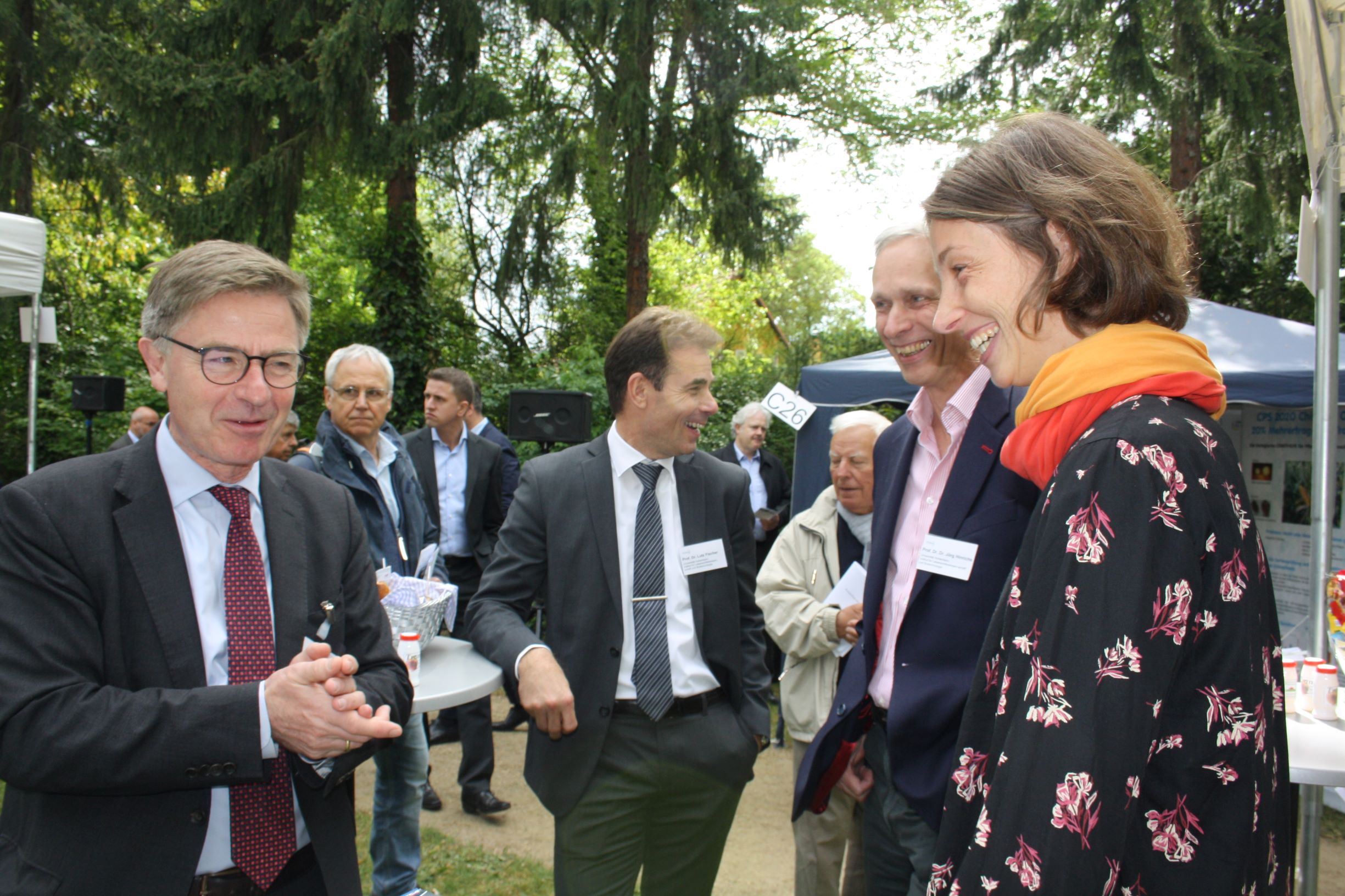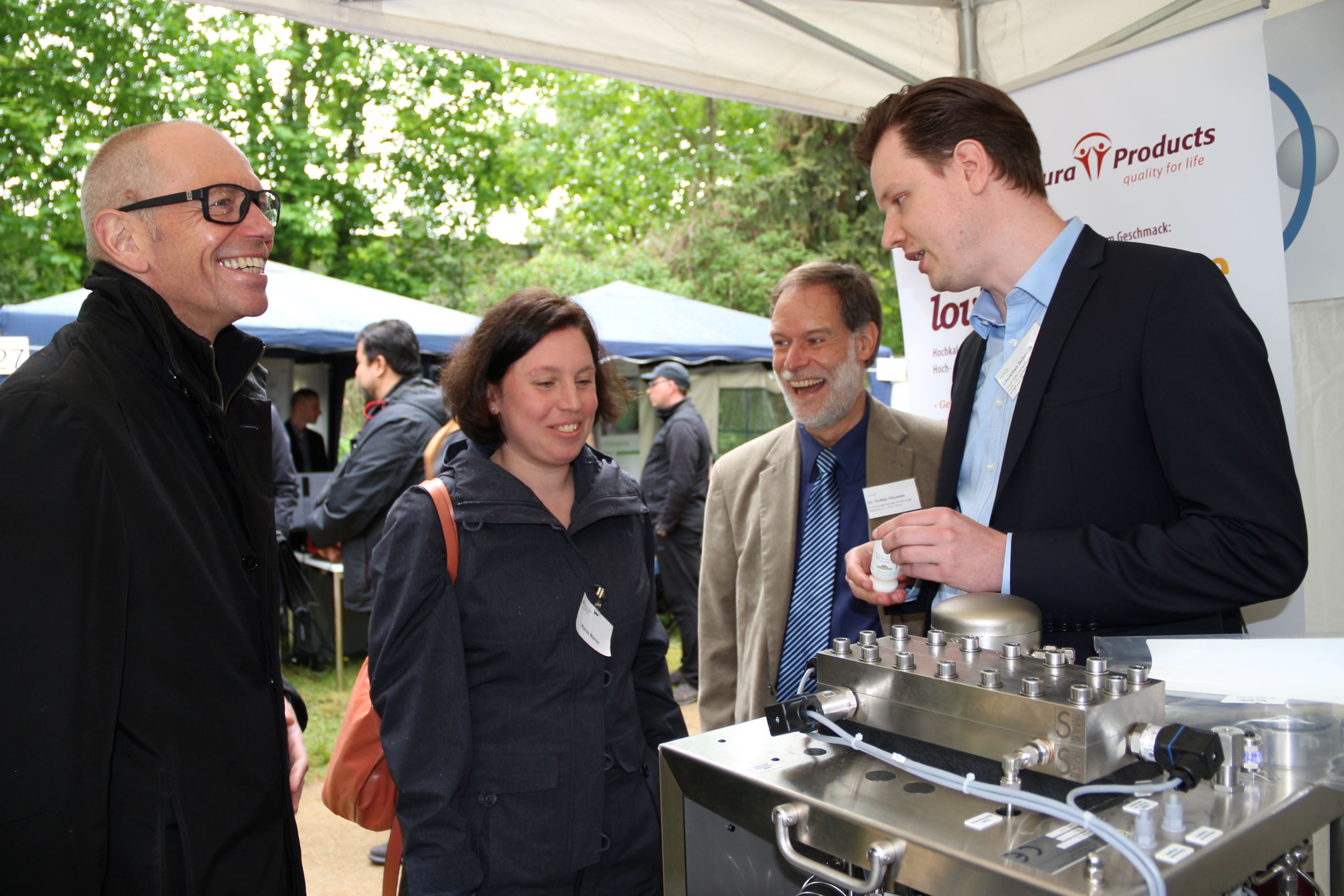 Premiere am Stand des FEI für ORR´in Wanda Werner, die im BMWi für Industrielle Gemeinschaftsforschung zuständig ist. Links: AiF-Geschäftsführer Dr. Burkhard Schmidt. Rechts: FEI-Geschäftsführer Dr. Volker Häusser und Christian Schmidt, Doktorand an der Universität Hohenheim.