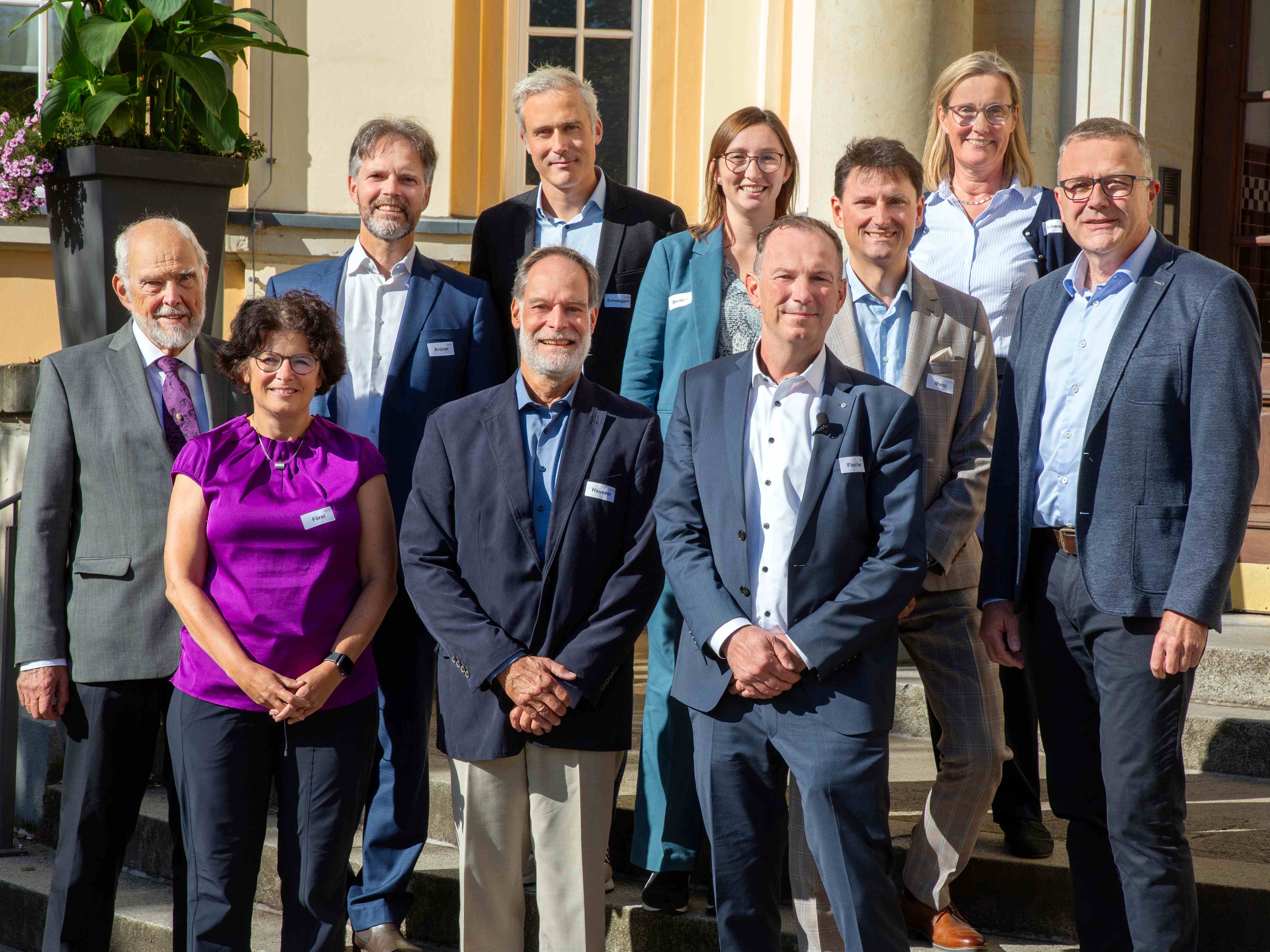 Die Referenten und Akteure freuen sich über einen gelungenen Veranstaltungstag; vorne: Prof. Dr. Dr. Friedrich Meuser, Prof. Dr. Petra Först, ehem. FEI-Geschäftsführer Dr. Volker Häusser, Prof. Dr. Markus Fischer (v. l.); hinten: FEI-Vorsitzender Dr. Götz Kröner, Prof. Dr. Ralf Schweiggert, Dr. Charlotte Stemler, FEI-Geschäftsführer Dr. Georg Munz, Prof. Dr. Karin Schwarz und Dr. Christian Hertel (v. l.)